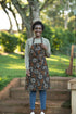 A long 100% cotton Kitenge apron to wrap for full coverage in all directions. Double Kenyan brass loops allow for custom adjustment for the perfect fit.